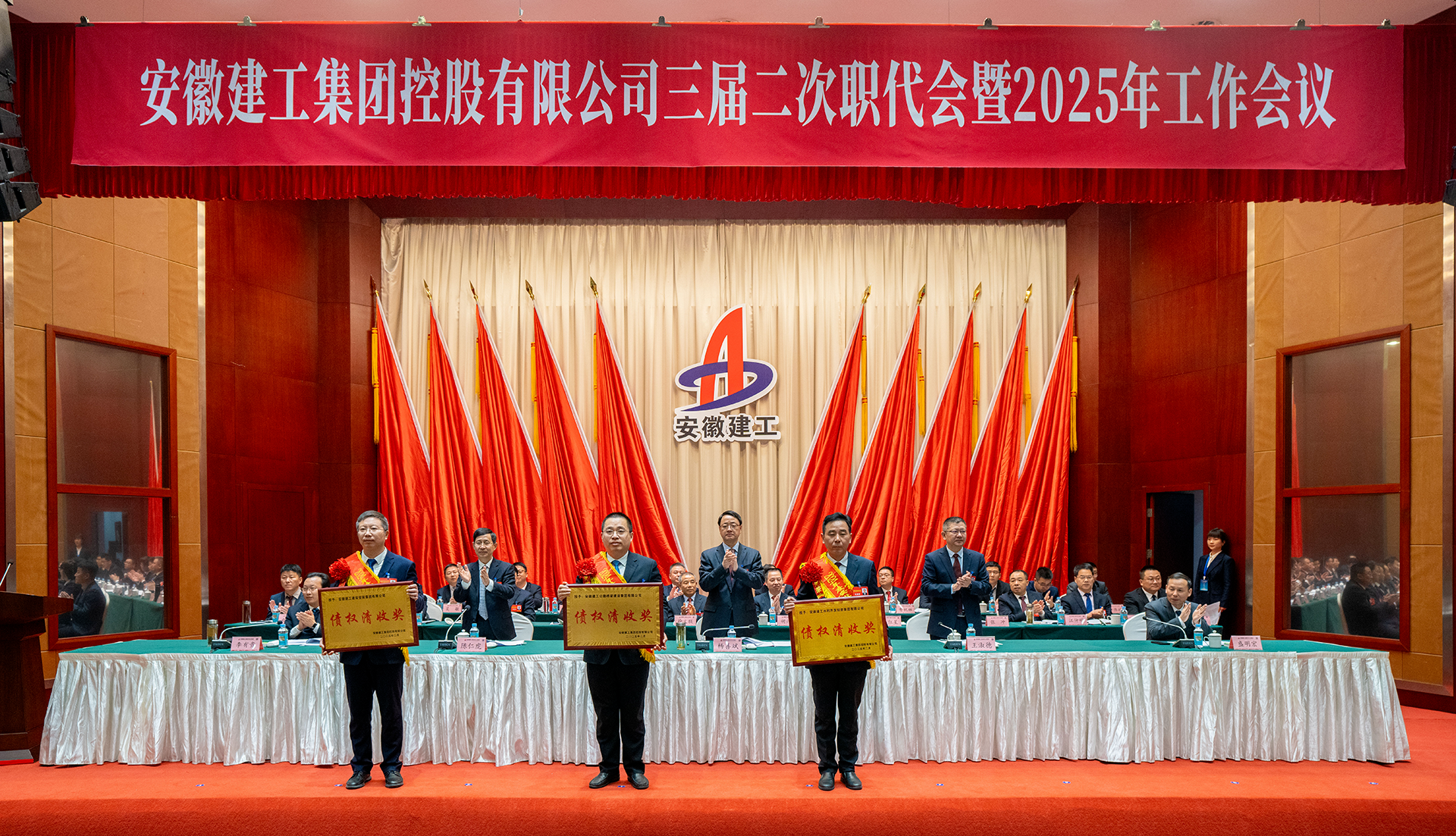2月9日至12日,安徽建工集團三屆二次職代會暨2025年工作會議在合肥召開,會議期間,對2024年度先進集體和個人進行了表彰。會上,建工水利榮獲集團2024年度“經濟發(fā)展獎”“資產盤活獎”“市場開拓獎”“債權清收獎”“項目管理獎”五個集體獎項、六人獲評集團2024年度優(yōu)秀個人獎。建工股份黨委委員、副總經理、建工水利黨委書記、董事長張鍵、建工水利黨委副書記、總經理杜海峰登臺領獎,張鍵作交流發(fā)言。