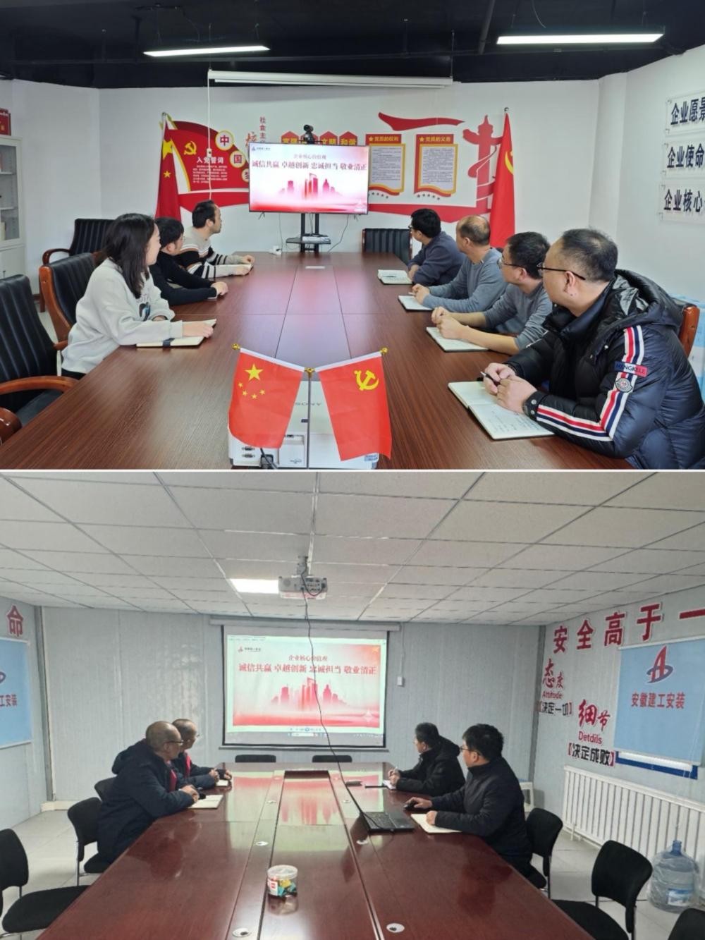 近日,安徽建工集團(tuán)發(fā)布“誠信共贏、卓越創(chuàng)新、忠誠擔(dān)當(dāng)、敬業(yè)清正”的企業(yè)核心價值觀。為深入學(xué)習(xí)、積極踐行,推動集團(tuán)核心價值觀落實(shí),建工安裝所屬各單位迅速行動,組織開展了一系列主題鮮明、內(nèi)容豐富、形式多樣的專項(xiàng)宣貫活動,掀起了學(xué)習(xí)宣貫熱潮。