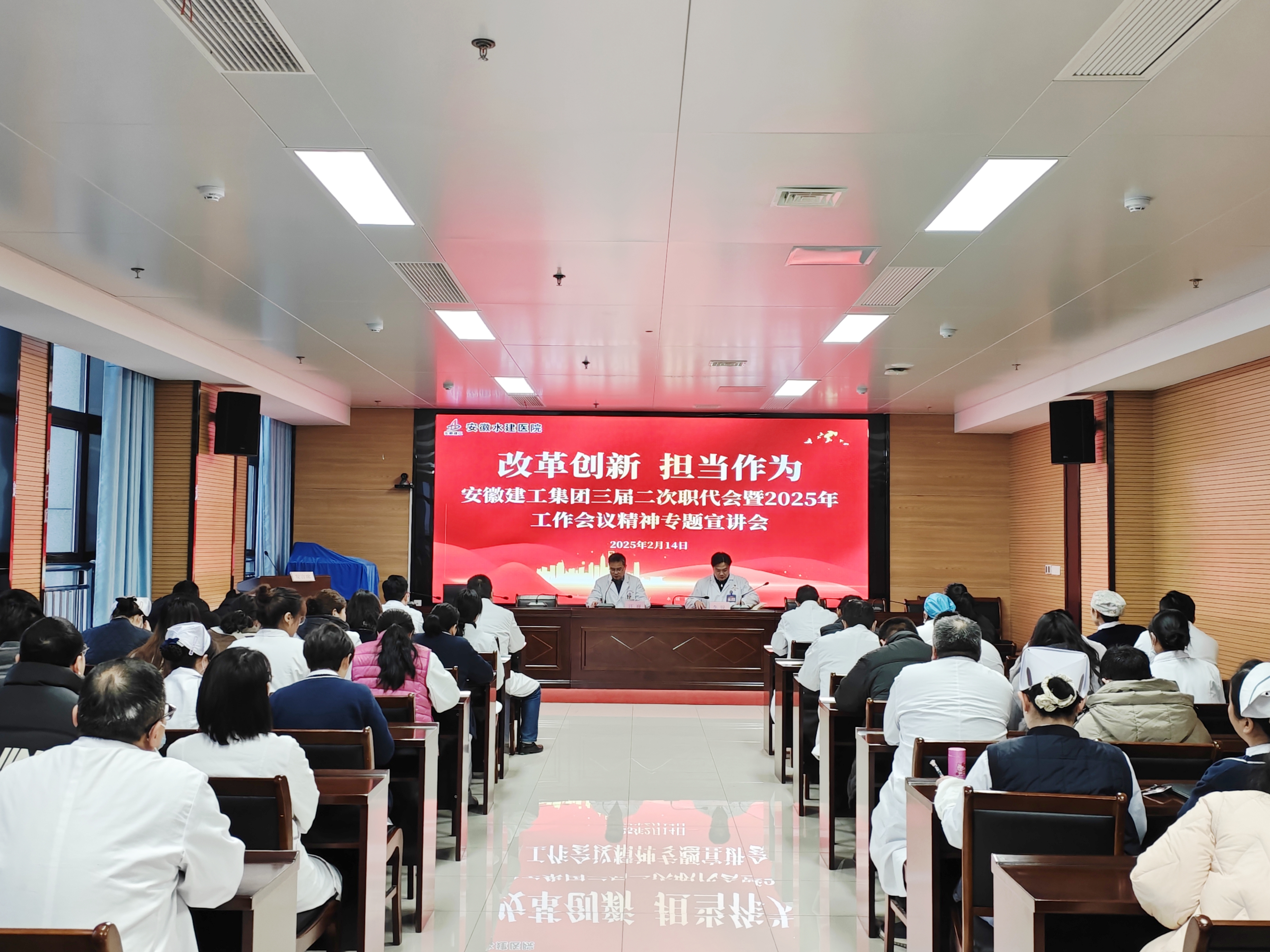 2月14日,安徽建工水建醫(yī)院召開專題會議,傳達學習安徽建工集團三屆二次職代會暨2025年工作會議精神。醫(yī)院班子成員、中層管理人員、全體黨員及機關部門人員參加會議。