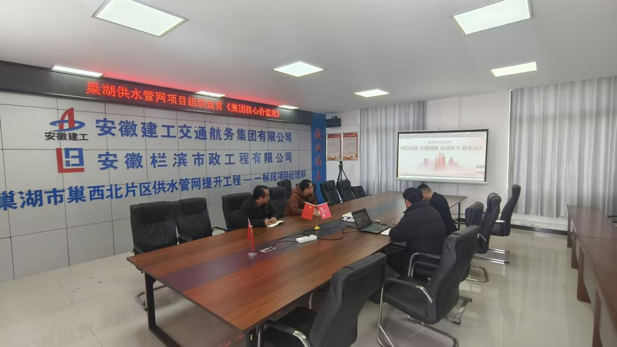 巢湖供水管道網(wǎng)項目召開專題會議,集中學習了集團發(fā)布的《關于開展安徽建工集團核心價值觀學習宣貫的通知》,鮮明解讀了“誠信共贏 卓越創(chuàng)新 忠誠擔當 敬業(yè)清正”核心要義。