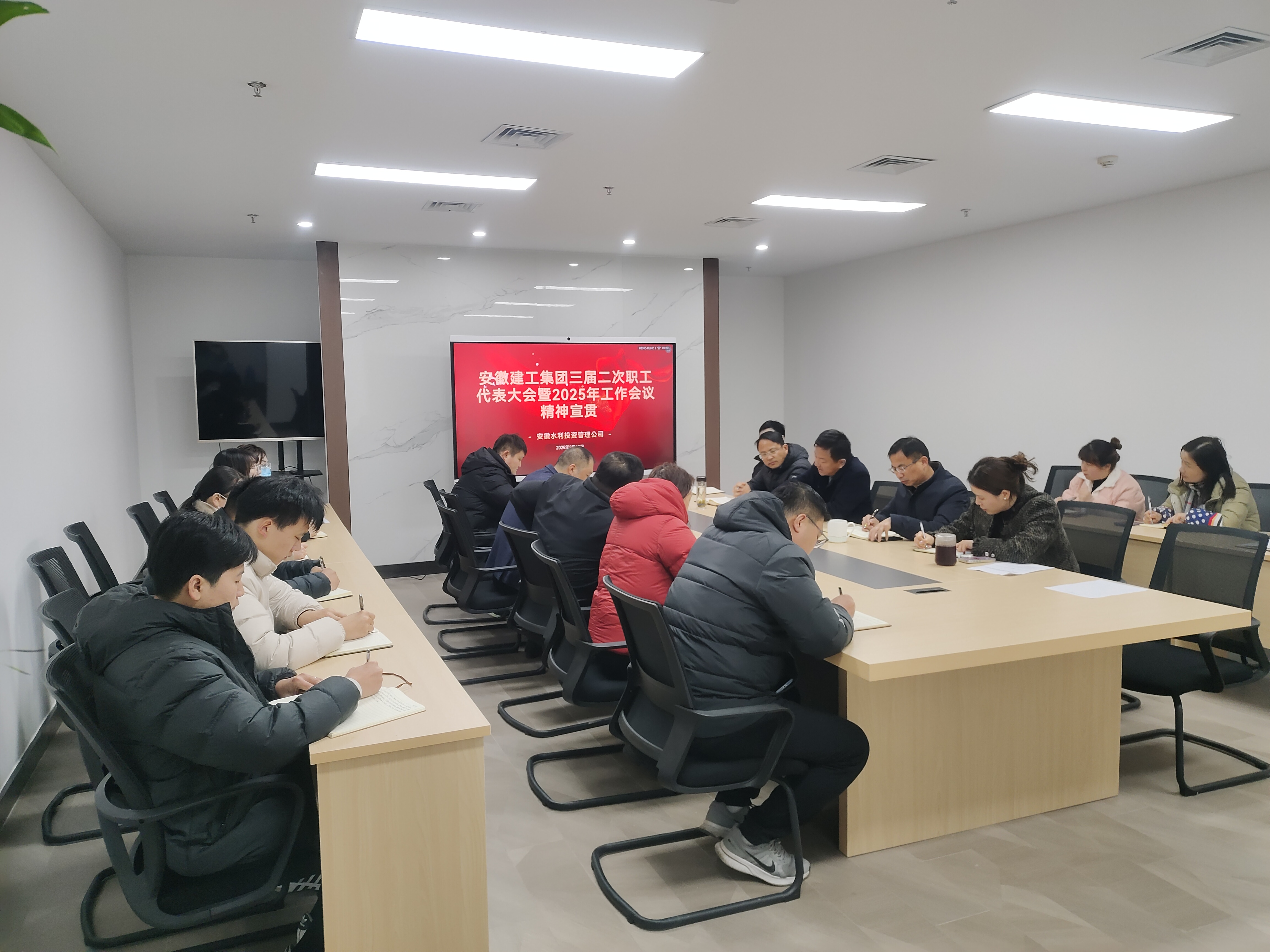 水利公司召開建工控股三屆二次職代會暨2025年工作會議精神學(xué)習(xí)宣貫會,透徹鉆研會議精神,緊密貼合核心任務(wù),把理論轉(zhuǎn)化為行動指南。要求廣大干部職工從各個工作環(huán)節(jié)入手,讓會議精神落地生根,將思想與行動同集團戰(zhàn)略緊密相連,向著年度工作目標穩(wěn)步邁進,全力以赴交出滿意答卷。