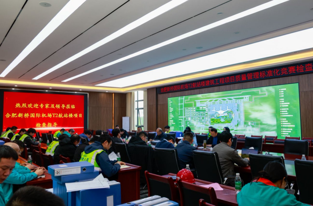 近日,中國建筑業(yè)協會委托安徽省建設工程質量與安全協會及專家到合肥新橋國際機場T2航站樓項目開展質量管理標準化競賽現場驗收。建工總承包副總經理王磊以及業(yè)主單位、監(jiān)理單位、總包單位等相關負責人參加。