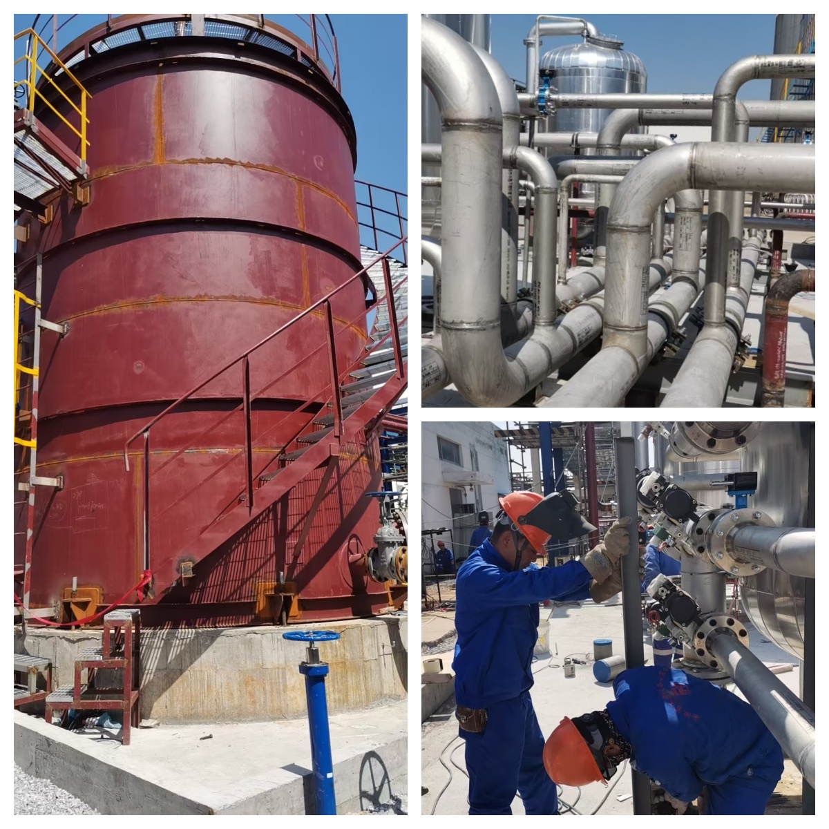 面對重重挑戰(zhàn),土建、安裝、電儀等各專業(yè)在有限的施工區(qū)域和緊張的工期內緊密協(xié)作,加班加點,全力確保項目按期交付。安裝專業(yè)任務繁重,需現(xiàn)場制作1座120立方米儲罐,安裝4臺除鐵過濾器、3臺精密過濾器、3排管廊架以及2臺提升泵。此外,還需鋪設350米各規(guī)格(DN200、DN150、DN100等)的不銹鋼工藝管道和250米碳鋼管道。土建專業(yè)主要負責廢水輸送泵、廢水收集罐、精密過濾器、除鐵反應器設備及配套管架基礎的建設,以及后期地坪的恢復。電儀專業(yè)則需完成20千米電纜敷設,安裝2臺機柜、2臺操作臺、1套控制儀表設備和1套除鐵成套裝置儀表,同時完成2千米配管和200米槽盒的安裝調試工作。