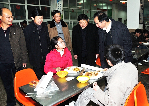 隨后,程廳長(zhǎng)一行在校領(lǐng)導(dǎo)的陪同下,實(shí)地察看了校園環(huán)境、實(shí)訓(xùn)場(chǎng)地和設(shè)施,并叮囑學(xué)校要重視和確保學(xué)生實(shí)習(xí)安全。程廳長(zhǎng)還深入到學(xué)生宿舍和學(xué)生餐廳視察,并就助學(xué)金發(fā)放和伙食等問(wèn)題與學(xué)生進(jìn)行交談。