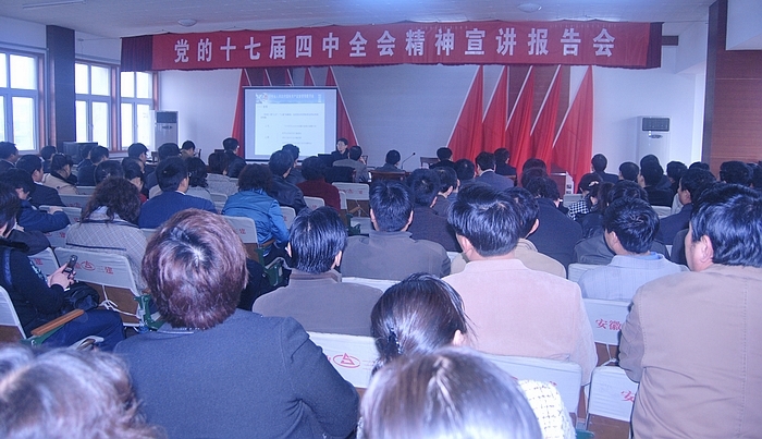 4月1日上午,省國資委黨的十七屆四中全會(huì)精神宣講團(tuán)副團(tuán)長(zhǎng)、組宣處調(diào)研員趙良耿帶隊(duì)來到安徽建工集團(tuán)宣講,宣講團(tuán)成員、淮南職業(yè)技術(shù)學(xué)院思政部主任、副教授朱友強(qiáng)作了題為《認(rèn)真學(xué)習(xí)十七屆四中全會(huì)精神全面推進(jìn)我省國有企業(yè)黨建工作》的專題報(bào)告。集團(tuán)公司領(lǐng)導(dǎo),所屬各單位領(lǐng)導(dǎo)班子成員、黨群部門負(fù)責(zé)人,集團(tuán)機(jī)關(guān)全體職工參加報(bào)告會(huì)。報(bào)告會(huì)由集團(tuán)公司黨委工作部主任吳曉伍主持。